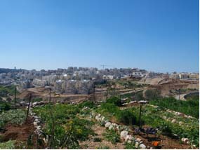 A question that I asked many of the farmers and all of the agronomists that I spoke with, was regarding the types of assistance being provided by the Palestinian Authority to Palestinian farmers. I heard repeatedly from farmers and agronomists that the Palestinian Authority and the Ministry of Agriculture have offered the farmers very little beyond lip service. The P.A. has not helped the farmers' effort to compete fairly in the local markets, or to provide training that would help them develop new products that can reach desired markets. The P.A. has not helped the farmers secure rights to reliable water, nor aided the farmers regarding their inability to access lands that have been expropriated from them. The Ministry of Agriculture has not provided farmers with educational initiatives that would enable them to return to and maintain the use of traditional seed varieties that are cheaper to purchase and are more suitable for the local soil, the local climate and local availability of water. Nor have they assisted younger farmers in learning to use traditional methods of low water agriculture, or the use of sympathetic and cyclical planting, or ways to develop more sustainable and less toxic methods of agriculture. (All of those labor intensive but environmentally sustainable agricultural methods were uniformly practiced by recent generations of farmers, but are being increasingly abandoned in favor of modified hybrid plants that may yield larger crops but are heavily dependent on chemical fertilizers and pesticides as well as on much larger amounts of irrigation. Several farmers nervously admitted to me that the chemicals have resulted in an increase in the number of cases of cancer and leukemia in their villages and surrounding towns. But they also said that they feel trapped in an agricultural practice that requires those chemicals.) The Palestinian Authority has also done little to encourage and incentivize younger men and women to follow their parents' farming practice, or to be trained to work productively in the agricultural sector. Most importantly, the farmers recount that the Palestinian Authority has done nothing to protect them from the rapid loss of farmland. The opposite appears to be true, the Palestinian Authority's neo liberal policies appear to have allowed wealthy Palestinian developers to easily purchase land that supported orchards, farmlands as well as open space for grazing and foraging, and convert them into tracts of concrete apartment buildings, industrial complexes, unfinished roads and expansive villas. This phenomenon can be seen in the seemingly unregulated and uncontrolled sprawl that defines the expanding edges of most Palestinian cities and towns.