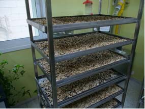 Another positive impact on Palestinian agriculture is being provided by professionally run organizations like UWAC (The Union of Agricultural Workers Committee), and PARC (The Palestinian Agricultural Relief Committee). Both organizations rely heavily, if not completely, on international funding, but are run entirely by Palestinian agronomists, veterinarians, hydrologists, and administrators. Both organizations provide through their regional offices, a range of educational and practical resources to farmers across the West Bank. At the core of each of the two organization's missions, is the development of policies and the promotion of practices that support food sovereignty. One of PARC's most impressive initiative has been to develop a seed bank from native plants that had traditionally been cultivated by Palestinian farmers. PARC's small seed farms and laboratory are gradually expanding an effort to grow traditionally successful Palestinian agricultural crops, collect, dry, and preserve the seeds extracted from the plants, then distribute those seeds, free of charge, to farmers who are interested in and wiling to grow those traditional crops. The objective is to break the farmers' increasing reliance on hybrid seeds that have been produced by international corporations. Those non-native seeds require intensive irrigation, and need to be frequently supplemented with chemical fertilizers as well as repeatedly treated with pesticides. The process of growing traditional crops is more labor intensive and the yield of the plants is less plentiful than the hybrid varieties, but they are infinitely more sustainable and regenerative from an environmental perspective and potentially profitable from the perspective of small farms producing healthy, pesticide free, and locally grown crops for small local markets.